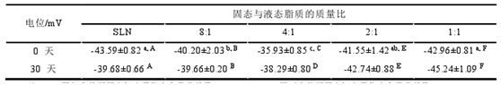 表1 固态与液态脂质的质量比对Zeta电位的影响