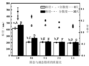 图1 固态与液态脂质的质量比对粒径及分散度的影响
